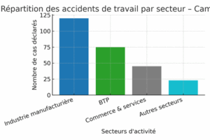 Selon l’Annuaire statistique 2024 de la CNPS, 263 accidents de travail ont été déclarés au Cameroun. Les secteurs les plus touchés :
